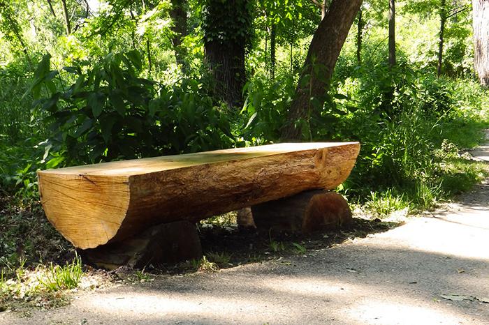 - Use a brush to apply exterior wood finish on the seat (or on the entire bench, if you debarked it) following the grain of the wood.