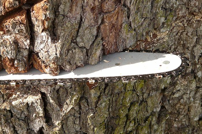 - Use the chainsaw blade solely for cutting and not as a hammer, lever or wedge for felling trees, for example