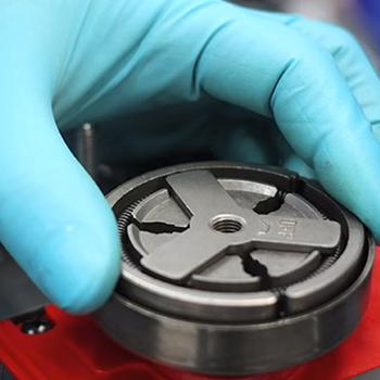 After cleaning the chain, we also recommend using an air compressor to remove debris from the surface of the clutch, flywheel and engine cooling fins.