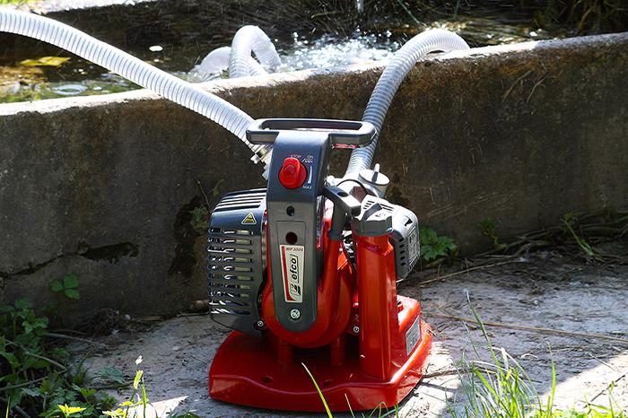 If you need to draw water from a ditch or rainwater reserve for irrigating your vegetable patch and garden in summer, you can use a petrol-powered self-priming water pump like the Efco MP 3000 with 1 kW power rating and maximum flow rate of 150 l/min.