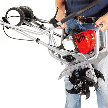 You can till soil much faster using a rotary tiller with petrol engine. One example is the Efco MZ 2030, a compact rotary tiller for vegetable patches and flower beds. Robust yet lightweight, it is also manoeuvrable in confined spaces, thanks partly to the reversible handgrip. It is equipped with a handy plough accessory, which works like a spade. If you have a larger vegetable patch, try the medium-powered Efco MZ 2075 RK model with fully adjustable handlebar, which is equipped with a plough and other rotary tiller accessories. You can use the furrowing tool to create furrows for seeding or drainage channels, or to turn over soil, and the potato digger to easily lift tubers out of the ground when harvesting.